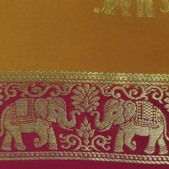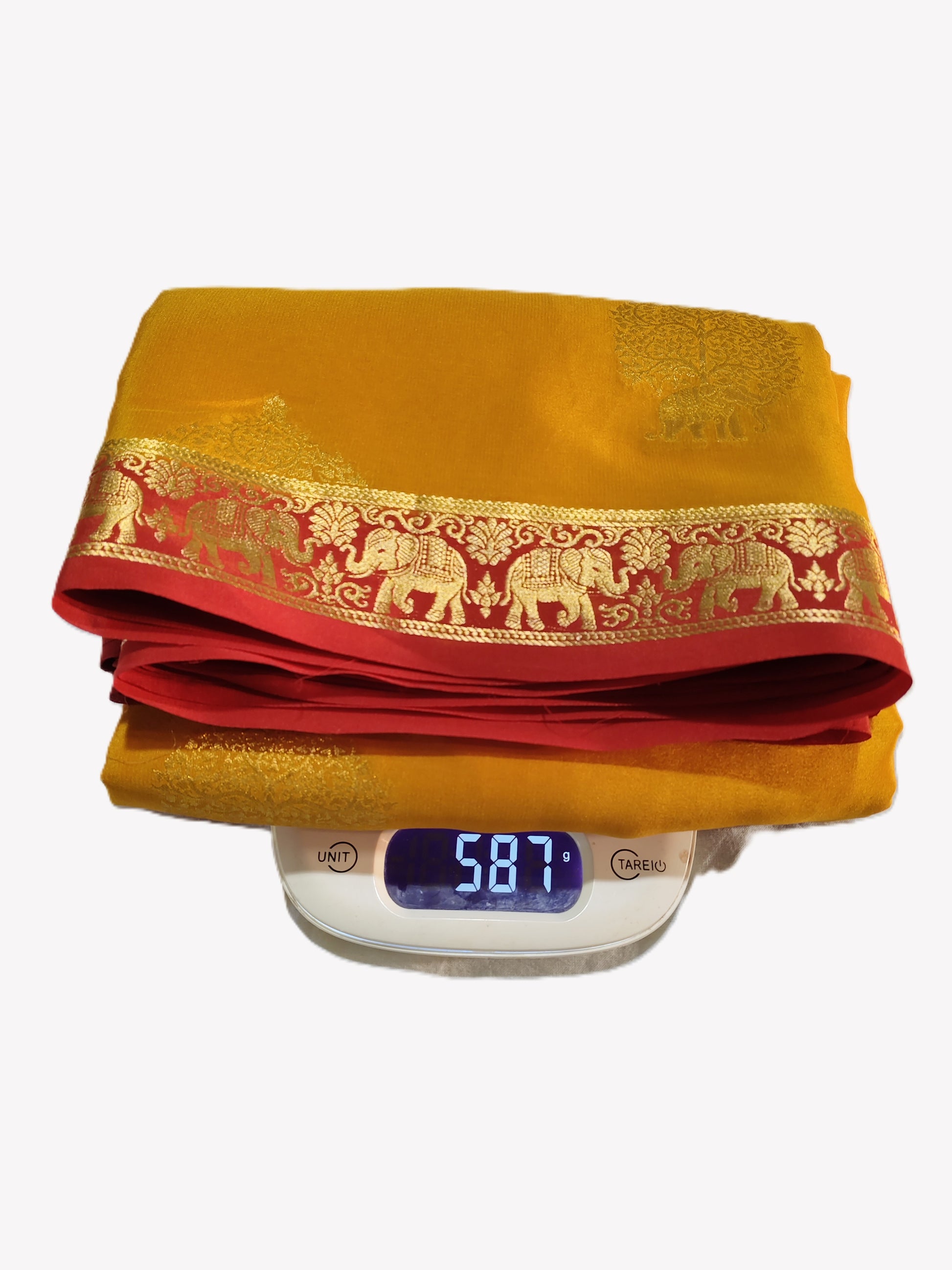 Pure Mysore Silk Saree with traditional elephant and floral designs(120gsm) - SR-PSMP4-Golden Yellow & Red